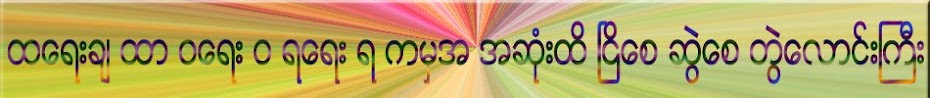 ဟုတ္ပ...ဟုတ္ပ...ရွမ္းၿဖစ္ေနလို႕သာေပါ့...ဗမာသာဆုိလို႕ကေတာ့ မ်က္စိၿငီး နားေနာက္လိုက္မယ့္ ၿဖစ္ၿခင္း...စာမူခလာေတာင္းသြားတာ ခ်ီးၿမွင့္မလို႕...ေပး...အဲဒီ ၀ါးလုံးေရၿပြတ္ကုိ ခဏငွား... :)))))